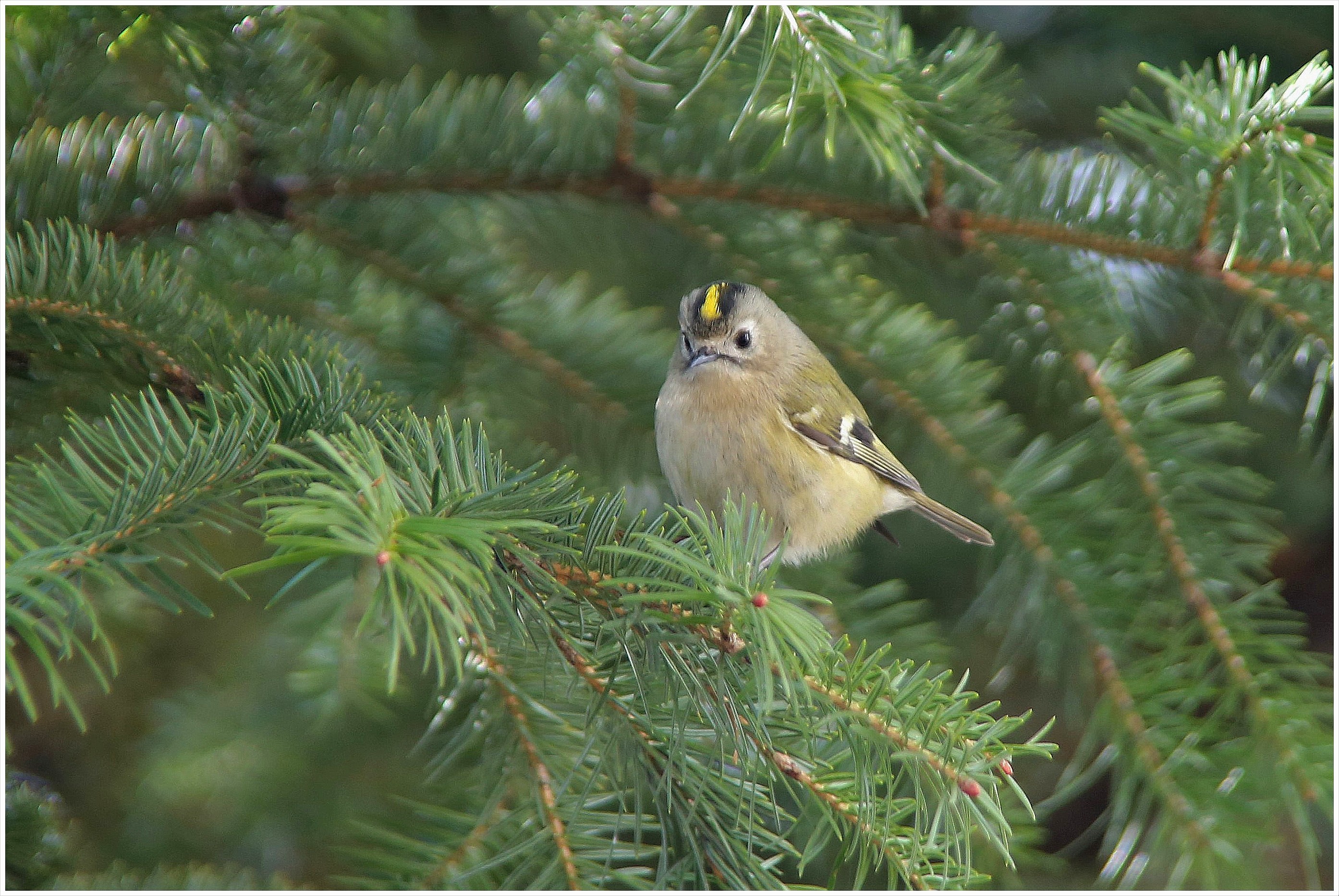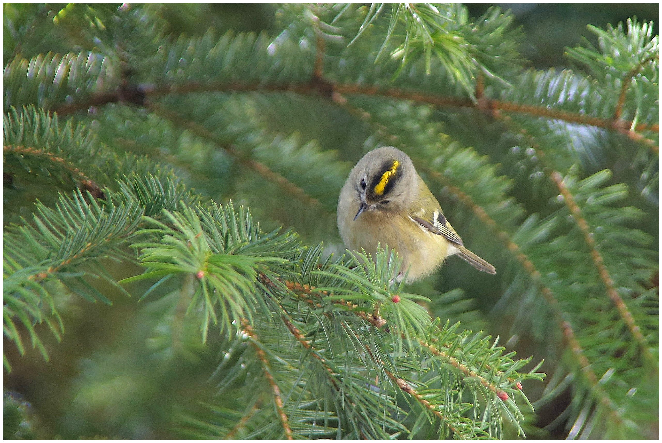 암수 모두 정수리에 노란색 깃털이 있는데,