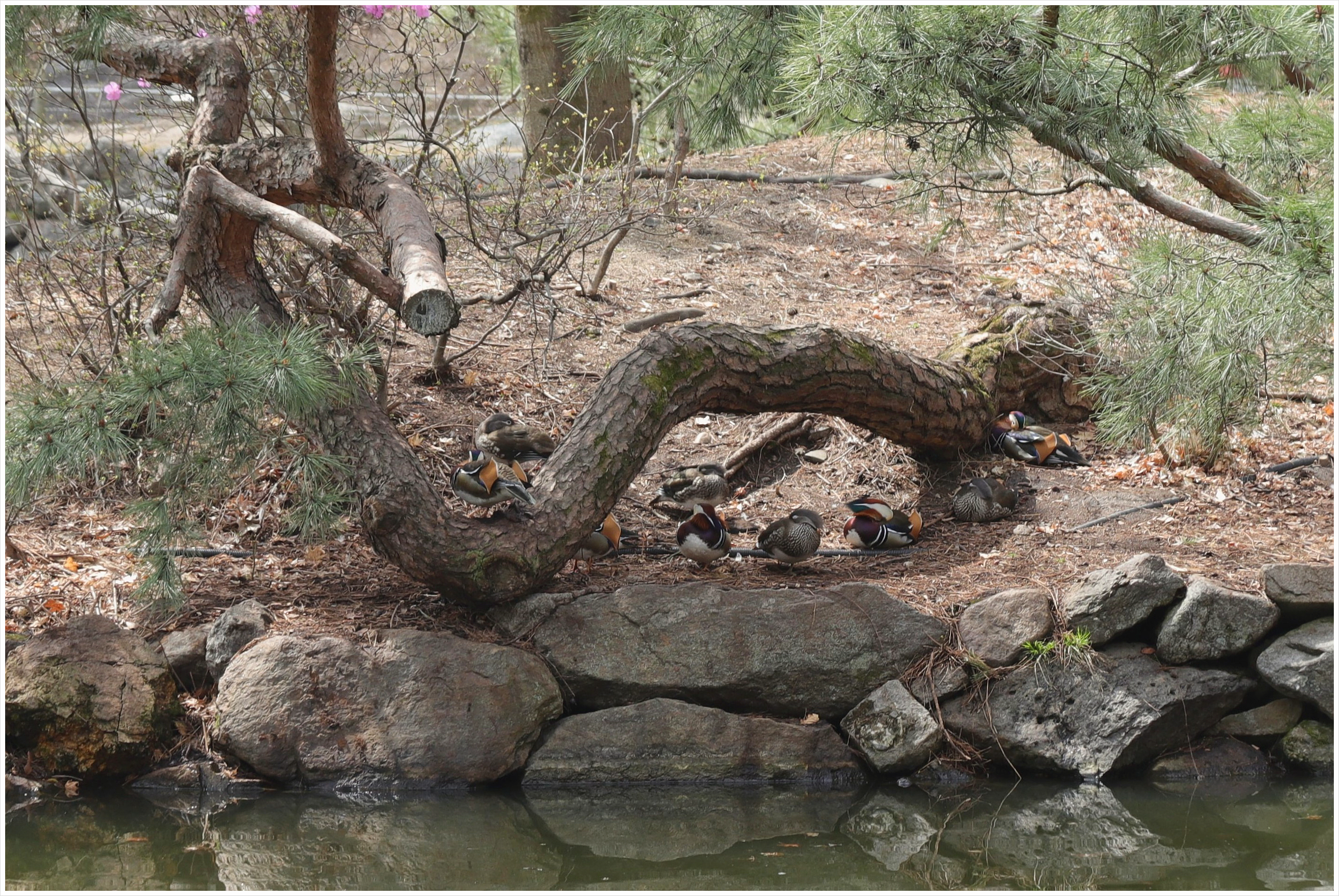 그늘에서 쉬고 있는 원앙새들...