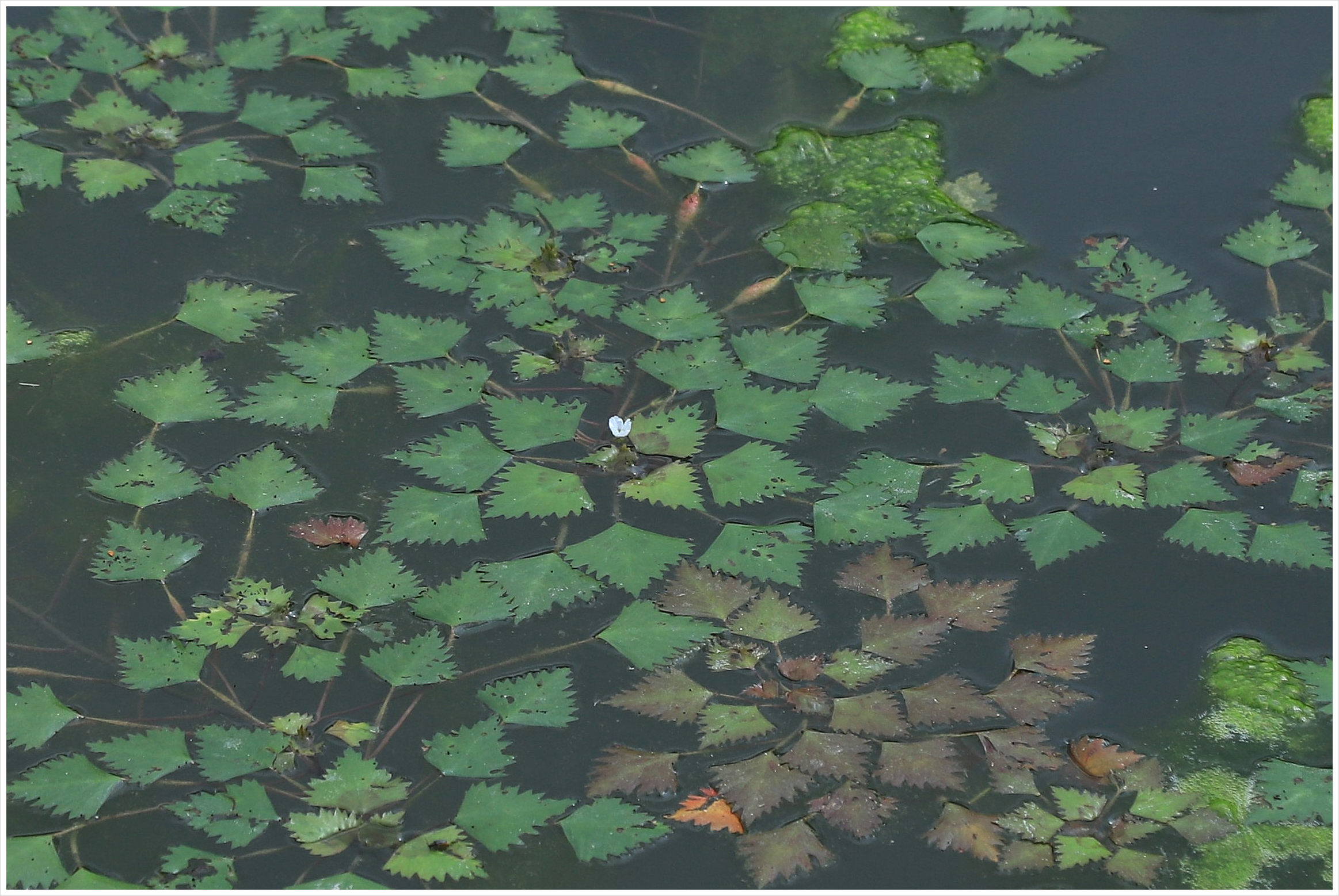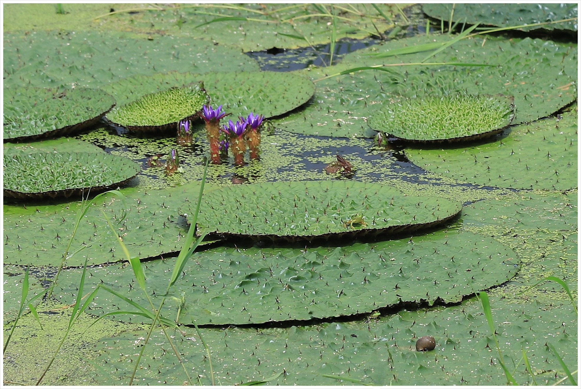 개구리밥 사이에 핀 가시연꽃