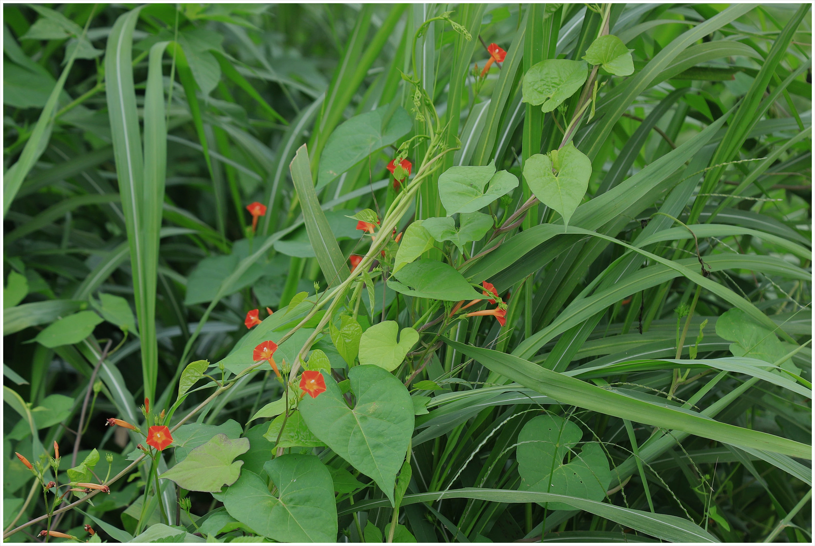 새깃유홍초는 드믄드믄 피고...