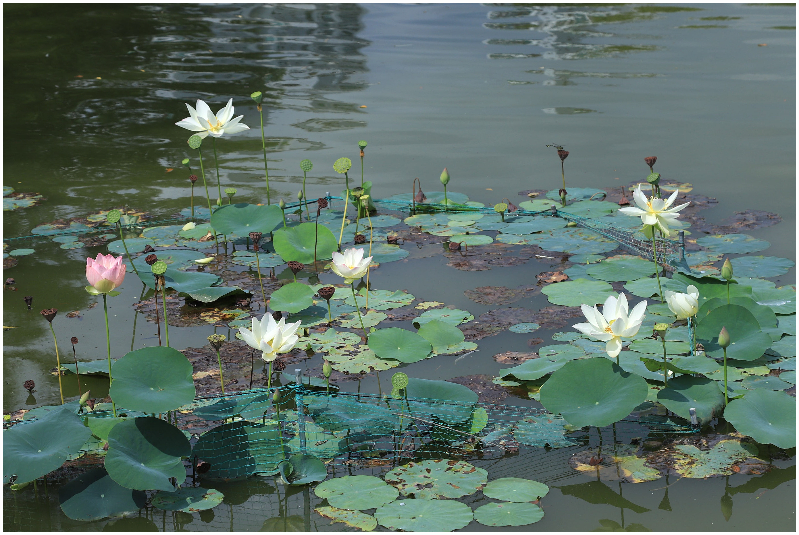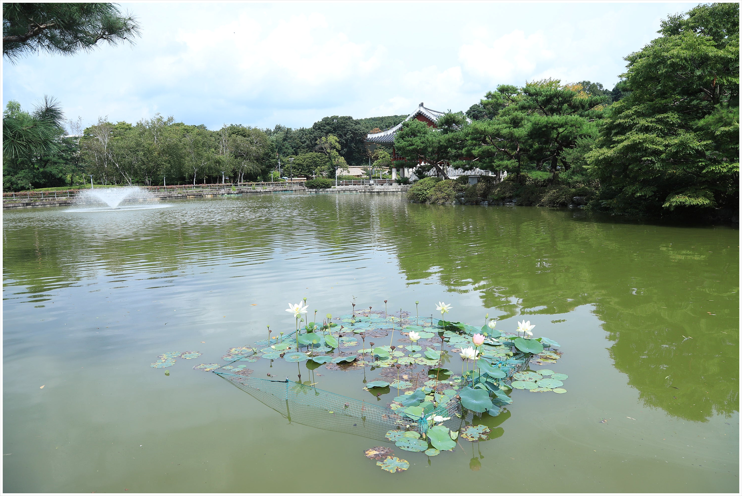 분당호에 심은 연꽃이 자리 잡는중...