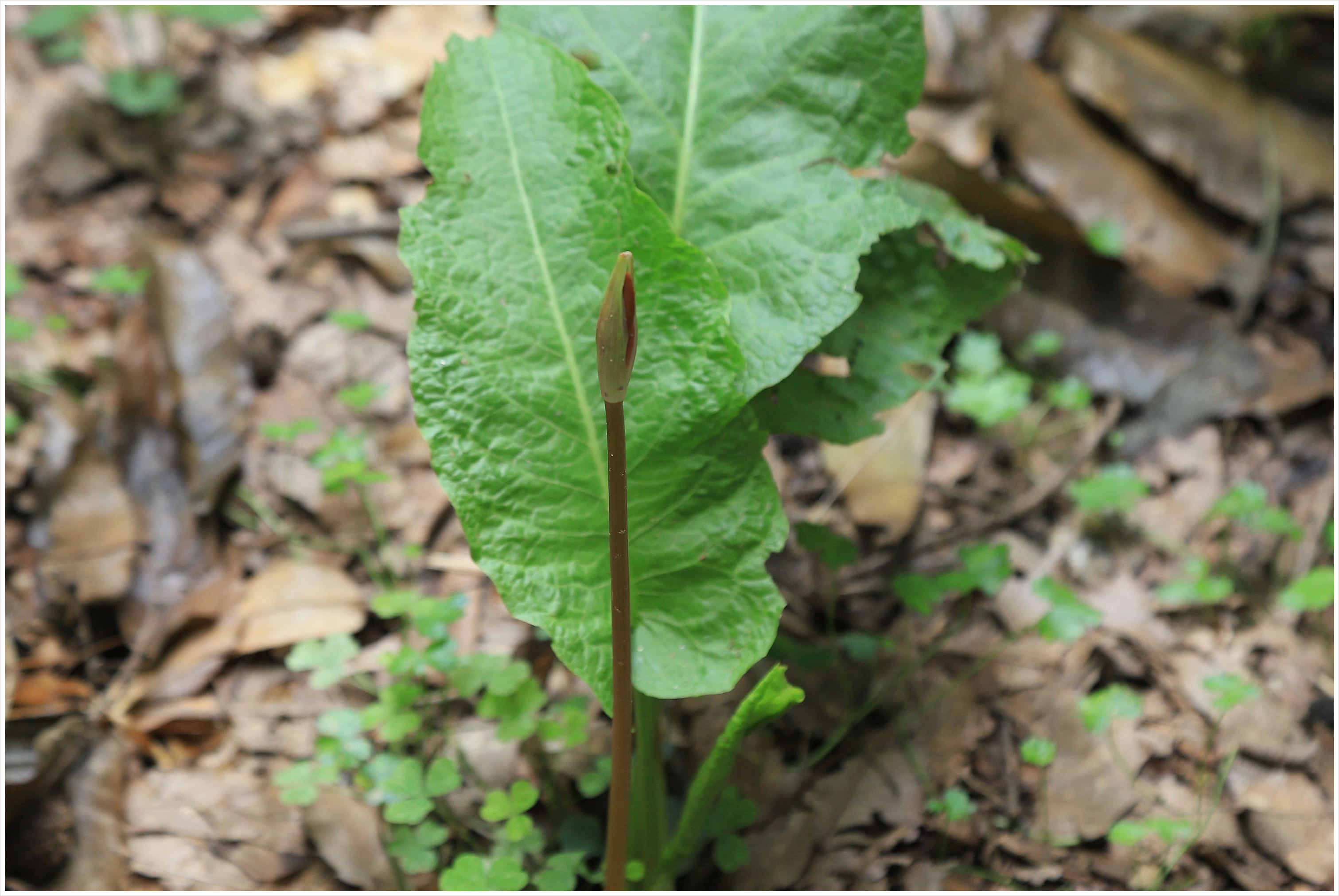소리쟁이 잎 뒤에서 꽃대 올린 백양꽃.