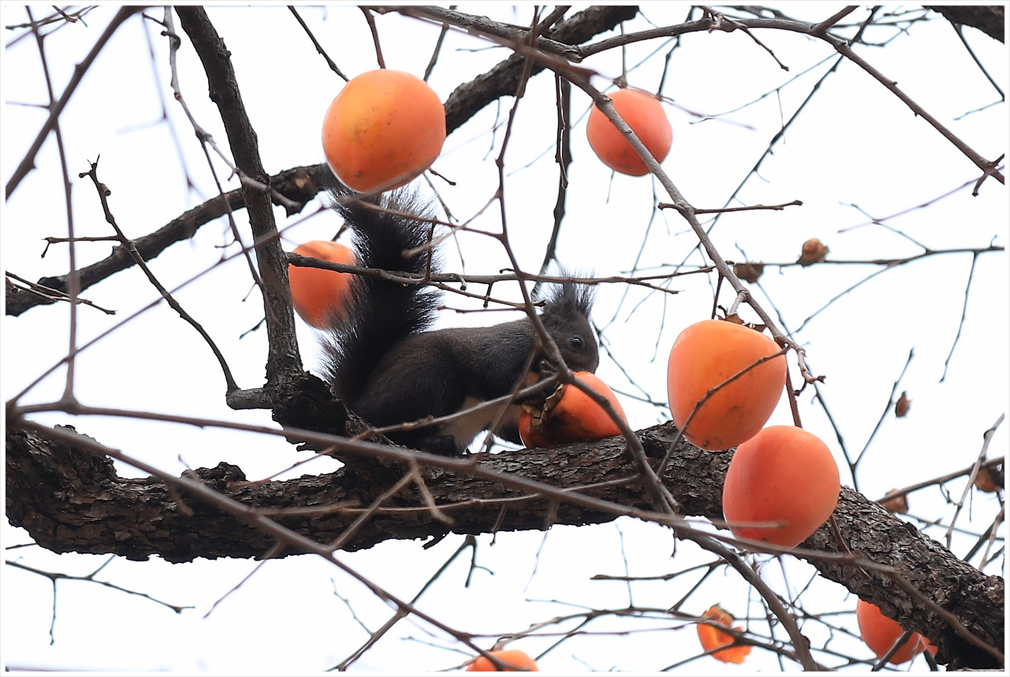 맛있는 감으로 요기를 하고 내려온 청설모